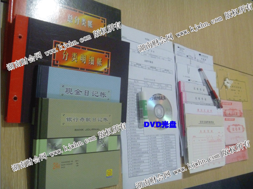 本课程包含以下内容: (1)教学视频DVD一盘;(2)企业案例账套三套(工业、商业各一套;外送企业软件版账套用友、金蝶、速达财务软件账套其中一套教学视频让您能从事企业手工账套还能从事财务软件账套);(3)仿真原始凭证二套(工业,商业各一套含仿真各种原始凭证约200张);(4)通用记账凭证两本(共200张); (5)专用记账账凭(收款凭证,付款凭证,转账凭证)。(6)收据一本;(7)现金日记账一本、银行存款日记账一本、总分类账一本;(8)科目汇总表;(9)明细账一本;九,资产负债表一张;利润表一张;试算平衡表一张。(10)凭证封面2份;凭证包角线一张。(11)装订针一根;腊线1根;固体胶1筒;不干胶标签贴2张;黑色笔1张;红色笔1支。